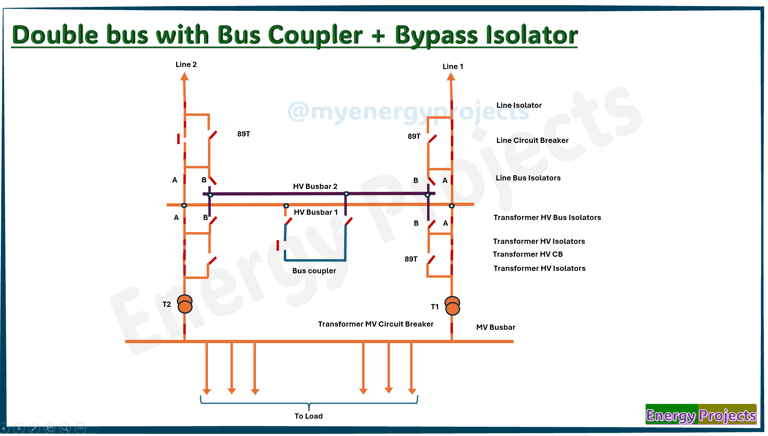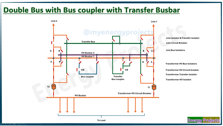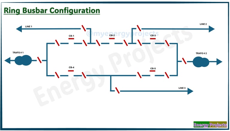 In power systems, various busbar configurations are designed to meet specific operational and reliability requirements. These configurations help enhance the system's efficiency by improving reliability, ensuring ease of maintenance, allowing operational flexibility, and optimizing costs. The choice of configuration depends on several factors, such as the size of the substation, the criticality of the load, and the need for continuity of service. Each type offers a different balance between simplicity, redundancy, and cost, enabling operators to manage power distribution effectively under normal and fault conditions. As a result, proper selection of a busbar layout plays a vital role in the overall stability and performance of the power network.